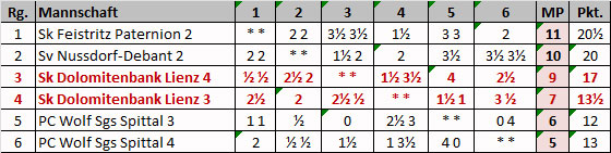 Sk Dolomitenbank Lienz 4 – Sk Feistritz Paternion 2 ½:3½