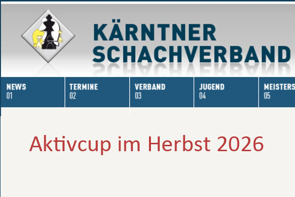 Leider ist es nicht gelungen, für den 26. April 2026 einen Ausrichter für den Aktiv-Cup zu finden. Der Aktiv-Cup muss daher auf den Herbst verschoben werden. Der gesamte Vorstand des Kärntner Schachverbandes bedauert, dass dieser Schritt erforderlich geworden ist.