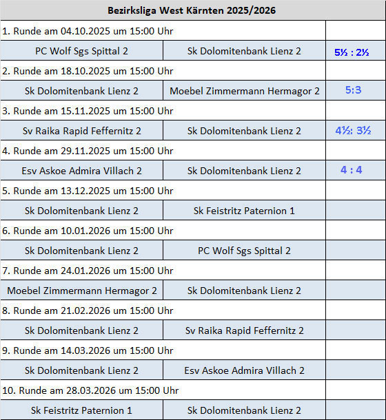 In der Bezirksliga West nimmt unser Verein mit einer Mannschaft in der Spielsaison 2025/26 teil. In der abgelaufenen Saison 2024/25 erreichte die Mannschaft den zweiten Rang.