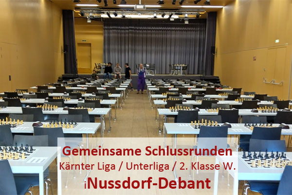 Heute Samstag werden im Gemeindeforum Nussdorf-Debant die Schlussrunden in der Kärntner Liga, Unterliga und 2. Klasse West ausgetragen. Rund 200 Spielerinnen und Spieler kämpfen um die letzten Meisterschaftspunkte. Während der Meister in der Kärntner Liga und Unterliga mehr oder weniger feststehen, wird es noch heiße Kämpfe um den Abstieg geben. Für Spannung ist also gesorgt! Beginn ist um 15.00 Uhr, Gäste/Zuschauer sind herzlich willkommen!
