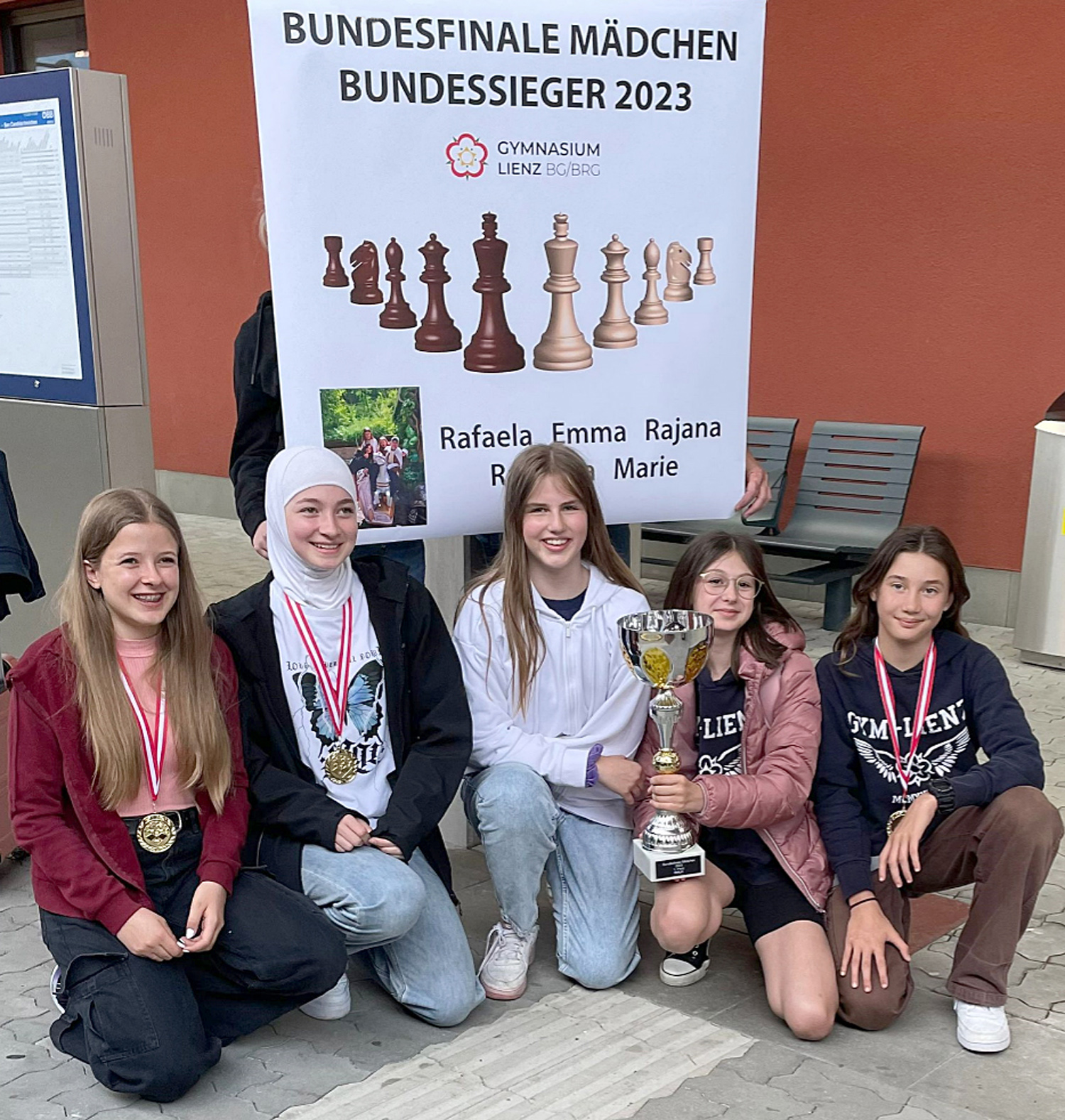 Die Mädchenmannschaft des BG/BRG Lienz gewinnt erneut das Schulschach-Bundesfinale vor der Mannschaft des Gymnasiums Sacre Coeur aus Wien und dem BG Seekirchen am Wallersee!